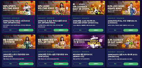 WEGO88은 신규 사용자 및 기존 고객을 위한 품질 높은 38가지 프로모션 및 보너스를 제공합니다. 이들은 낮은 롤링 대비 높은 보너스 요율을 제공하고 있어, 플레이어들은 사이트 이용에 높은 만족도를 보이고 있습니다.