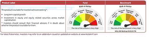 The Kotak Multicap Fund follows SEBI’s 25:25:25 allocation rule, with flexibility to deploy the remaining 25% dynamically based on market conditions and opportunities.