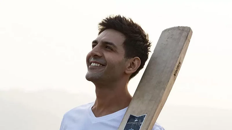 Now, taking to Instagram, Kartik shared a picture of himself in a white v-neck tee shirt, and holding a cricket bat. He is smiling while looking towards the sky. The snap shows the actor in his avatar of ‘Chandu’.