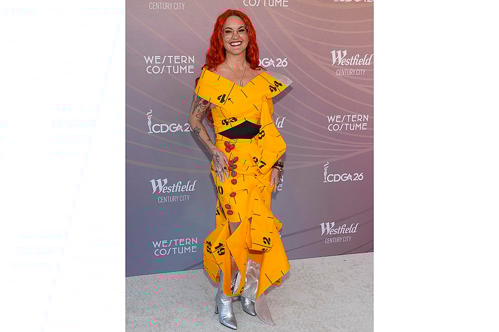 Elissa Alcala, costume designer for the television series ‘Ahsoka’ and ‘The Mandalorian’, shows off her shoes at the 26th Costume Designers Guild Awards at NeueHouse Hollywood, in Los Angeles.
