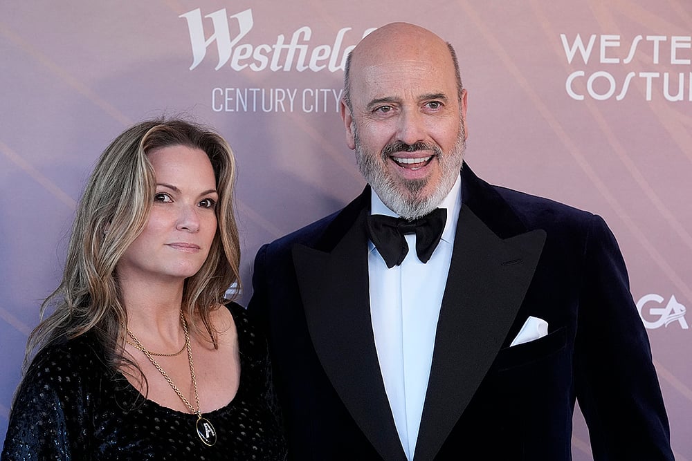 Gali Noy, left, and Mark Bridges, costume designers for the film ‘Maestro’, pose together at the 26th Costume Designers Guild Awards at NeueHouse Hollywood in Los Angeles.