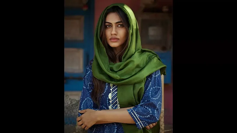 For the first look, posing against the golden hour, Apeksha Porwal is wearing a beautiful hot pink gown. The actress accessorized her look with a stack of silver bangles, a mirror-work choker and another beautiful silver necklace. She opted for minimal makeup and loose curls. This boho look is surely archived.