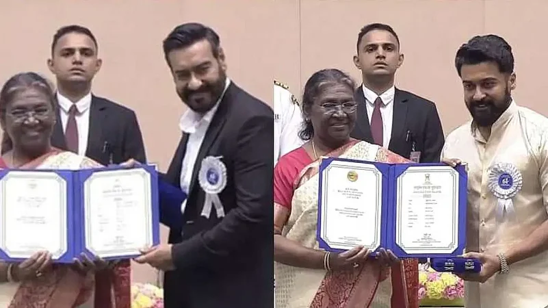 President Droupadi Murmu on Friday conferred cinema veteran Asha Parekh with the prestigious Dadasaheb Phalke Award and honoured other winners of the 68th National Film Awards, including actors Ajay Devgn, Suriya and folk singer Nanchamma.