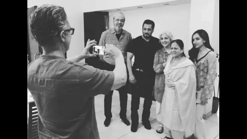 A photograph has gone viral on social media, where Salman is seen posing with Aamir's mother Zeenat and sister Nikhat Hussein. Behind the camera, the 'PK' star is seen taking a picture of them.