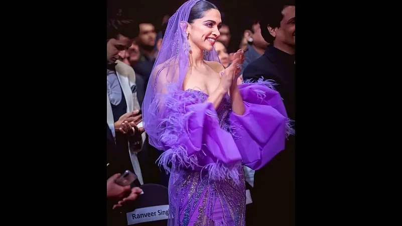 Deepika Padukone, the style queen of Bollywood, left everyone awestruck with her enchanting purple gown. Designed for an award show, the gown featured exquisite frills at the bottom, while a captivating cape draped over her head with a trail.