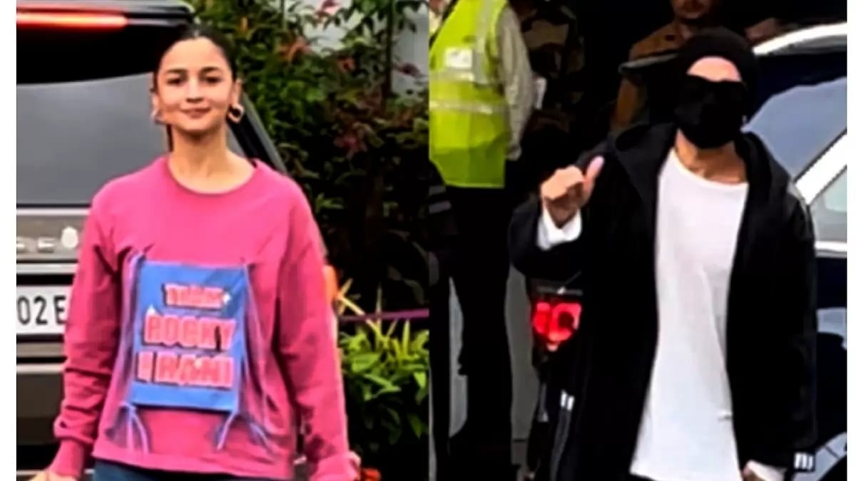 Bollywood actors Alia Bhatt and Ranveer Singh were spotted at the Kalina airport here on Saturday morning, as they headed for the promotions of their upcoming romantic drama 'Rocky Aur Rani Kii Prem Kahaani', directed by Karan Johar.