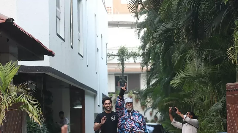 Known for his ‘Sunday darshan’ at Jalsa, Amitabh was accompanied by Agastya, who was seen wearing a black tee shirt and blue denims.