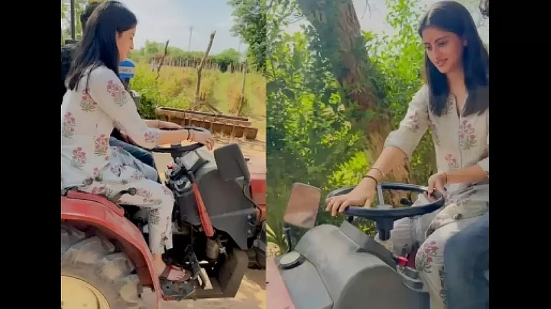 Megastar Amitabh Bachchan's granddaughter Navya Naveli Nanda has shared a video of herself driving a tractor in a village in Gujarat
