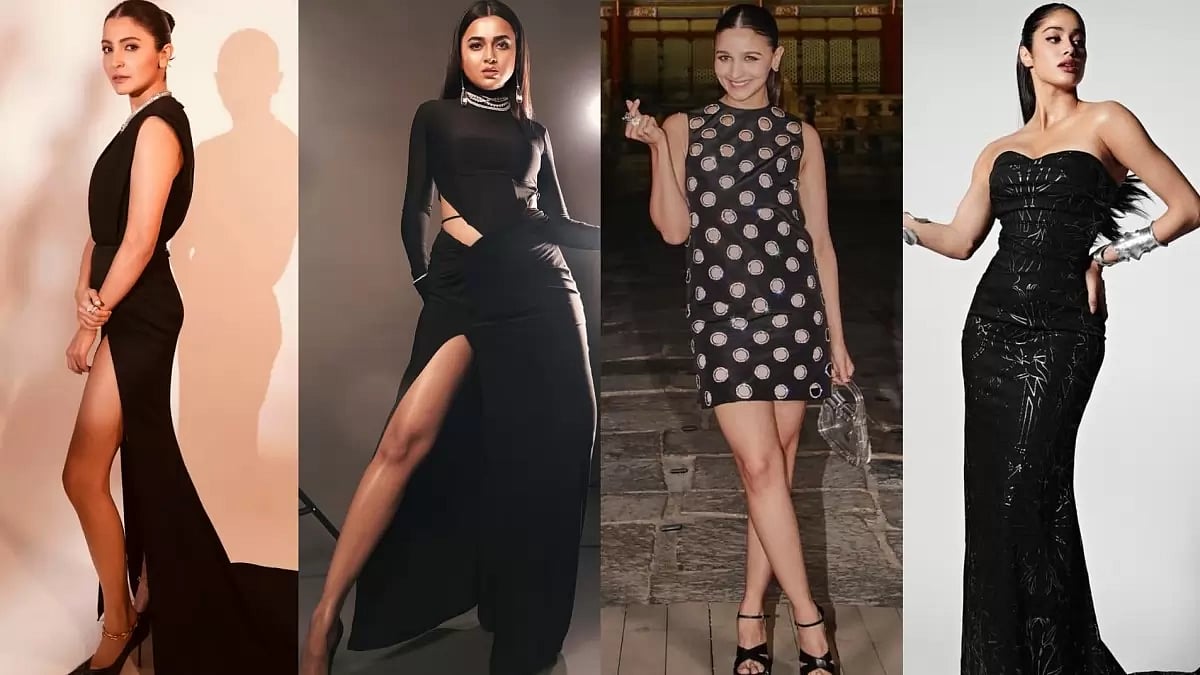 Anushka Sharma made a bold fashion statement in a striking Toni Maticevski black gown. The gown's knee-high slit added a touch of drama to her overall ensemble. Golden anklets and a diamond necklace from Bulgari were her choices of high jewellery. Her hair was fashioned into a sleek bun, emphasising her sleek and sophisticated style.