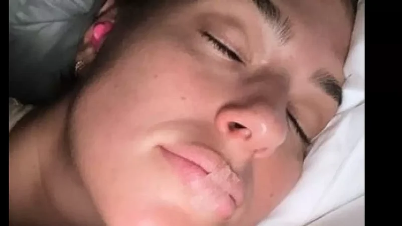 She took to her Instagram Story with a snap of herself sleeping with her mouth taped shut, which is a popular at-home treatment to combat issues such as snoring.