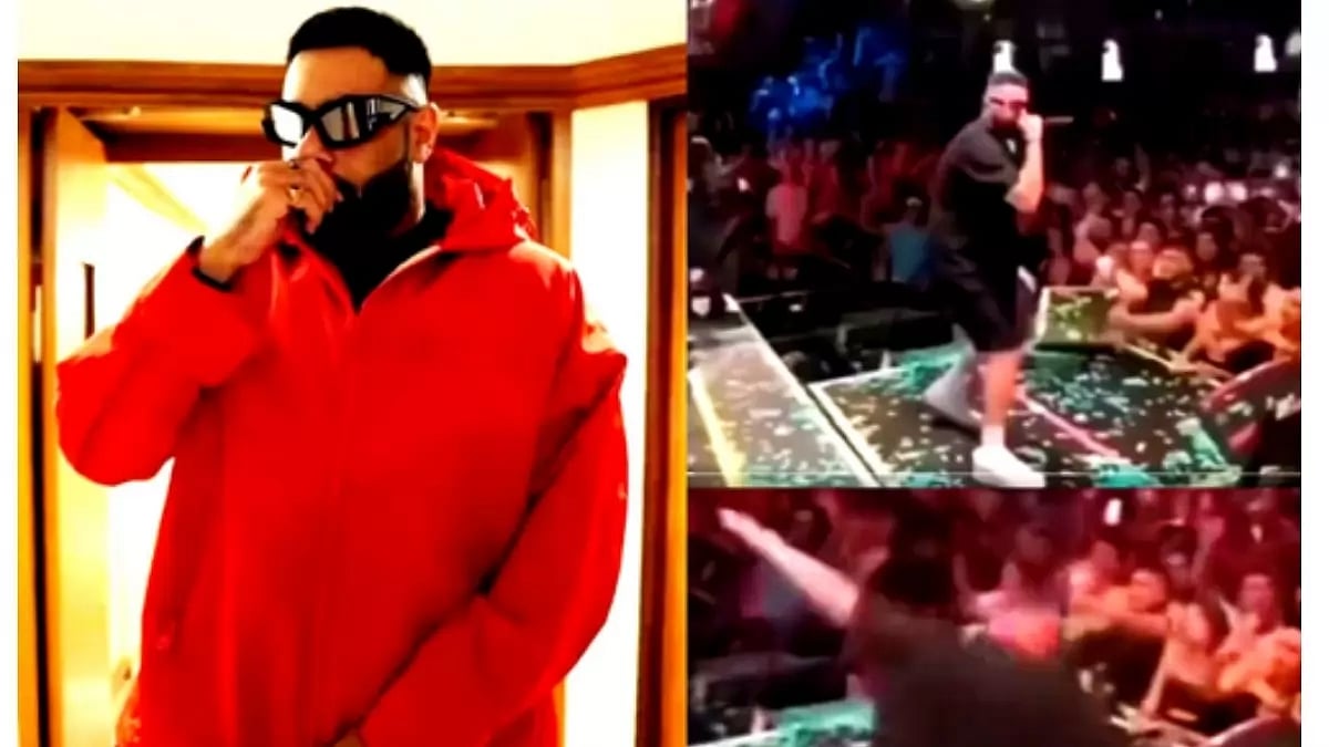 The viral video shows a person dressed in an all black ensemble and white sneakers. He has an uncanny resemblance to Badshah. He is seen singing and suddenly loses balance and falls into a box next to the stage.