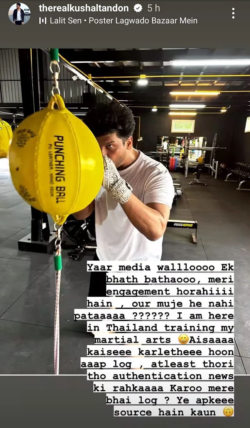 Her co-star Kushal also reacted to it. He rubbished the rumours and wrote, "Yaar media wallloooo Ek bhath bathaooo, meri engagement horahiiii hain, our muje he nah pataaaaa ?????? I am here in Thailand training my martial arts. Aisaaaa kaiseee karletheee Hoon aaap log, atleast thoro tho authentication news ki rahkaaaa Karoo mere bhai log? Ye apkeee source hain kaun (sic) (Hey media folks! Let me tell you something, I'm getting engaged and I didn't even know about it??? I'm here in Thailand training in martial arts. How do you guys do this? At least verify the news properly, my brothers. Who are your sources anyway?)''