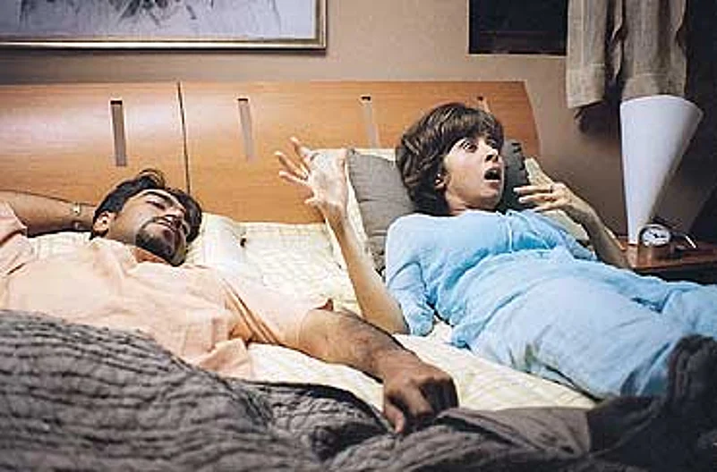 Horror in Bhoot moves out of descrepit havelis to a smart new address—Apartment No. 1201, somewhere in Mumbai. Stock analyst Vishal (Ajay) moves into the flat with wife Swati (Urmila) despite knowing that its previous occupant, a young woman called Manjeet, had jumped to her death. Roman Polanski's The Tenant? Nothing perplexing. Predictable things happen in 1201—Swati starts seeing "Sixth Sense" visions, becomes paranoid, goes sleep-walking and vague-talking. However, the first half does pack in an incipient sense of fear and a lingering menace that makes you "giggle with fear and shiver with pleasure". Varma plays with his viewers' anticipations, manipulates their collective psyche with some dainty stabs of the unexpected. And shows that he is a craftsman in control. He uses some imaginative wide-angle shots and even funkily frames his actors waist-down. The scenes unfold slowly and deliberately, there are long tracks of complete silence and minimal use of dialogue that together create an uncanny mood. Even the everyday traffic, the hip cineplex, the crowded beach and the eccentric housemaid (Seema) can harbour terror. The ominous, afterall, is part of the daily grind.