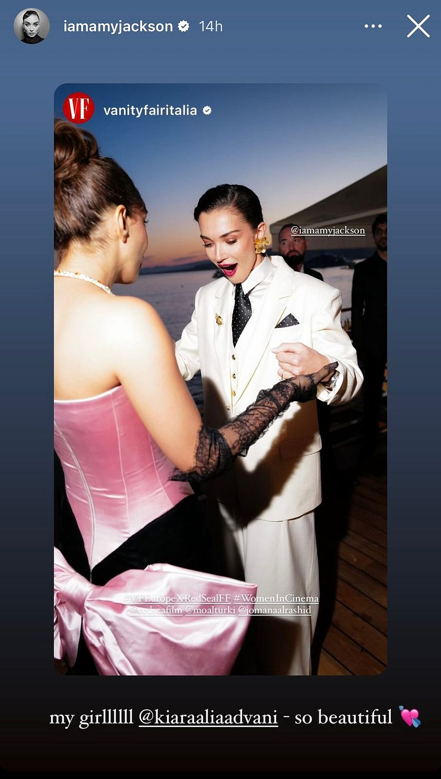 Meanwhile, Kiara Advani was also in attendance at the star-studded dinner, representing India on the international stage. She adorned an off-shoulder silk pink and black gown, accentuated by a large pink bow at the back. The two actresses even crossed paths and got papped together in a candid, as captured by Vanity Fair Italia on Instagram, and reshared by Jackson.