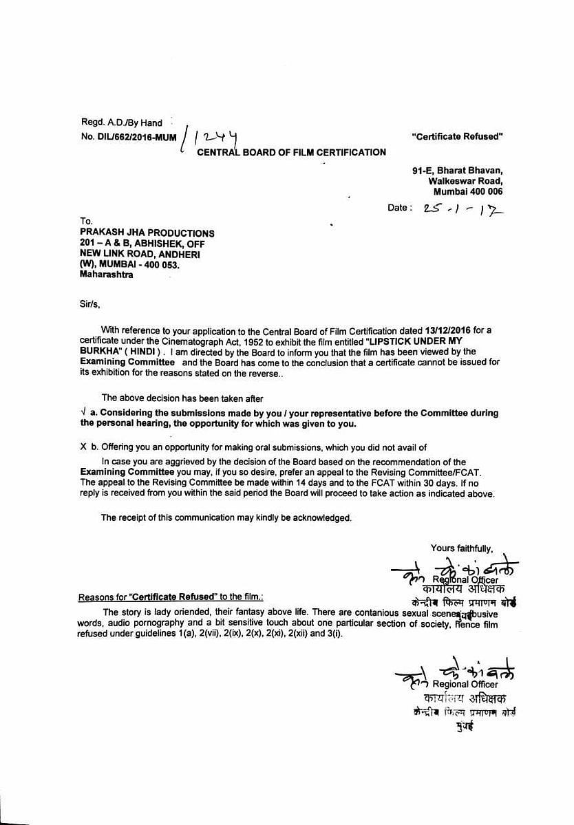 Staying true to its reputation, the Censor board has denied certification to Alankrita Shrivastava's film, Lipstick Under My Burkha, citing the film to be 'lady oriented.'