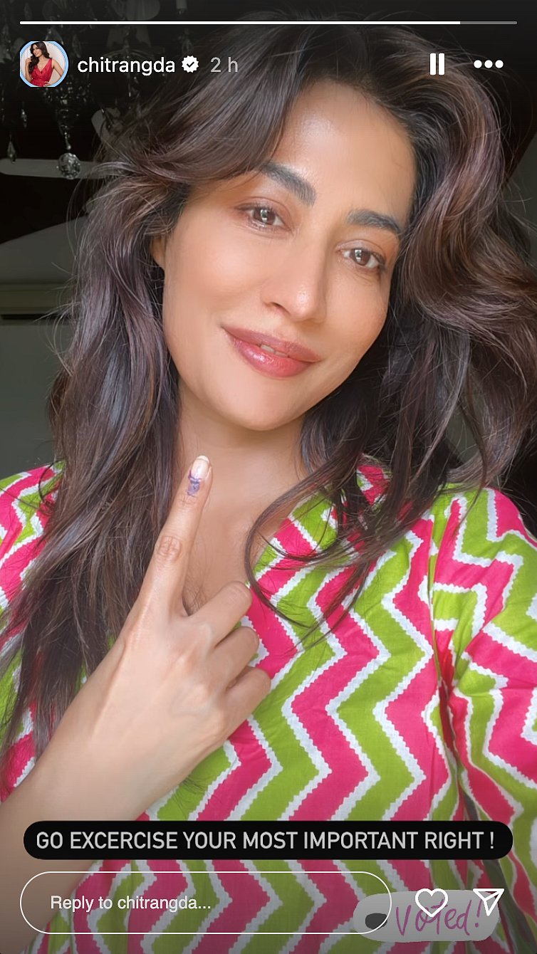 Chitrangda took to her Instagram stories on Saturday and shared a picture dressed in a colourful kurta, proudly displaying her inked finger and smiling at the camera.