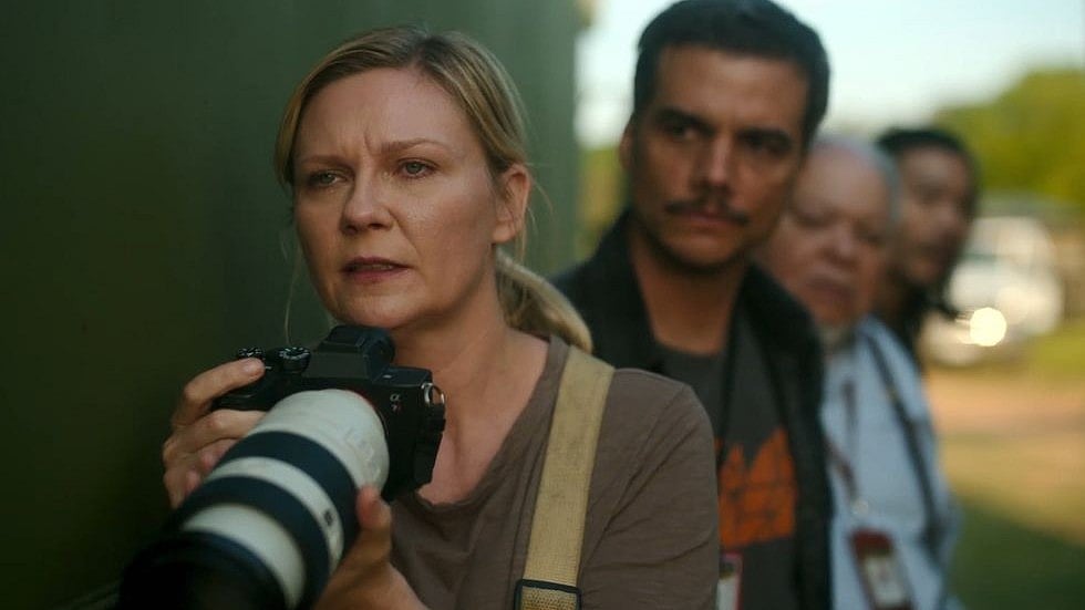 Alex Garland’s ‘Civil War’ will have you clutch your seat from the get-go and is unlike anything Garland has made so far. It may echo other films but spotlights the challenges journalists face in a world teetering on the brink of extreme polarization like no other movie ever has. It follows four journalists, led by Kirsten Dunst in a gritty avatar, trying to beat others in getting the scoop of a lifetime – a word from the President, especially before rebel troops can reach him. The movie is a visceral mirror to war-torn journalists on a quest, detaching themselves from the political polarisation feeding the civil war around them in a future United States.