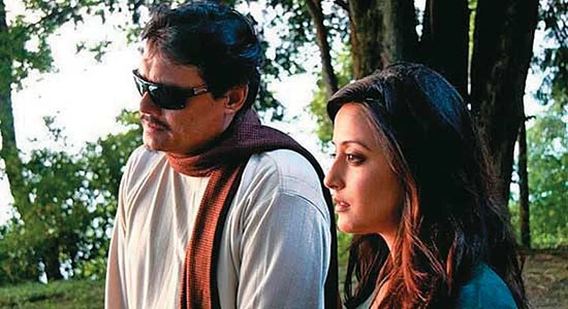 This somewhat cliched theme of the deprivation of one sense leading to the sharpening of the others recurs through the film, but to Ganguly’s credit it is not thrust upon us jarringly with statements or monologues, but conveyed through a racy plot and some suspense. A mystery woman (Raima) lands up to help the teacher deal with a threat to his property in north Bengal, near his beloved school, where he is no longer welcome. We are kept guessing about what his friend-cum-advocate (Indraneil) really wants from him; we suspect the headmaster to be corrupt, in collusion with the land mafia. But things are not as they seem. The movie packs in masala in the form of murder, betrayal, bedroom scenes and even a hint of a love triangle.