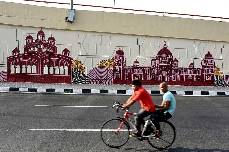 The past four years of an arterial Delhi road had painted dirty images of it being dug up across the Yamuna, but now the scene has dramatically brightened up. Just as the public has begun enjoying the sparkling Expressway linking the national capital more efficiently with Meerut, there is a streak of visual art too accompanying the traveller to western Uttar Pradesh. The 96-km road today features a remarkable line-up of frescos and sculptures along its starting tract that cuts the river which waters the cereal and vegetable fields on either side.