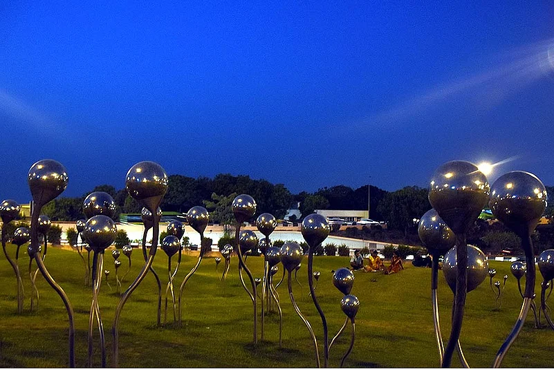 The steel sprouts in the park surrounded by the AIIMS flyover. Installed by a steel company, many a Delhi commuter is familiar with the shiny metal globules.