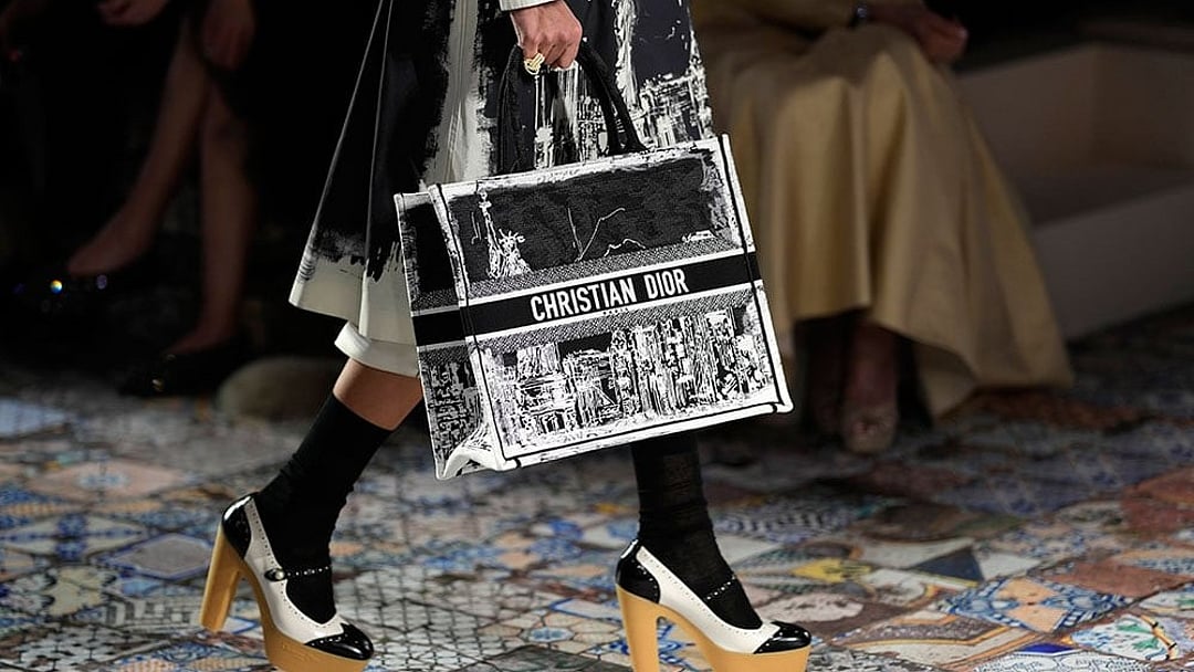 A model walks the runway during the presentation of Dior’s pre-fall 2024 ready-to-wear collection, Monday, April 15, 2024, at the Brooklyn Museum in New York.