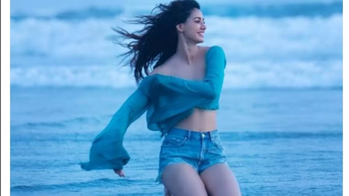 In the poster, Disha looks carefree and enjoys the soothing waves at the beach. She is wearing denim shorts with a turquoise blue top and like always, she is looking fabulous.