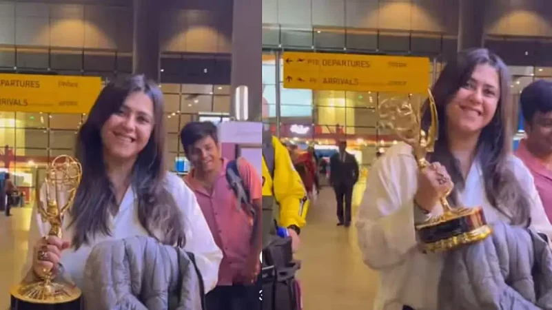 Producer Ektaa Kapoor returned to India on Monday after her big win at Emmy Awards 2023. The producer scripted history as she was honoured with the prestigious International Directorate Award at the 51st International Emmy Awards for her ‘trailblazing career and impact on the Indian television landscape’. The award ceremony was held in New York City. Yesterday, Ektaa was spotted at the Mumbai airport where she showed off her award with a big smile.