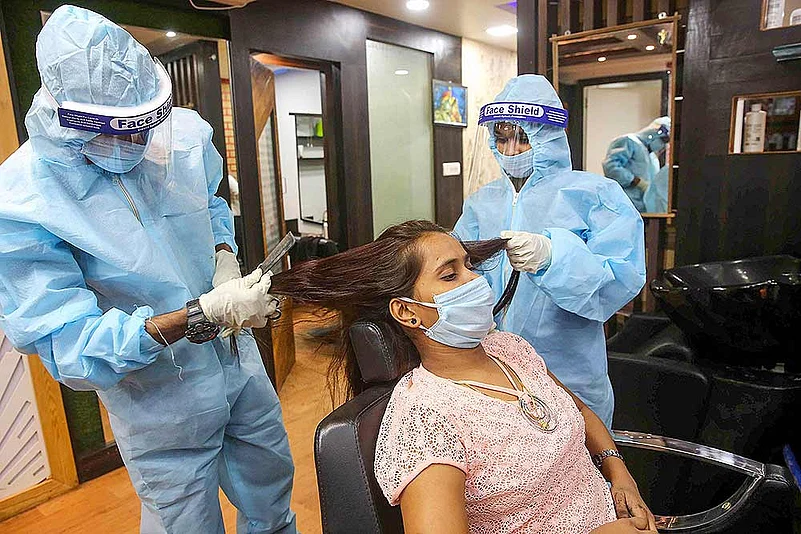 But not all fretted about split ends and frowned upon the overgrowth. Mrs Mehta from a quiet Delhi suburb east of the Yamuna worried about the fading dye. “What a hag I have become,” she would wonder and panic each morning while she fired up the tea pot. Similar scenes played out at households around the closed nation. For all its grey starkness, many were anxious about the silver streaks showing up, the colour sachets running out. Some went for quick fixes like homemade henna and hibiscus juice. Until parlours reopened with masks, hazmat suits, tanks of disinfectants et al. Some didn’t give a damn. TV actress Seema Mishra was one—doesn’t mind letting people see her natural grey hair. “I don’t have to fuss about going to the salon. I am glad I am safe. I am grateful for that.”