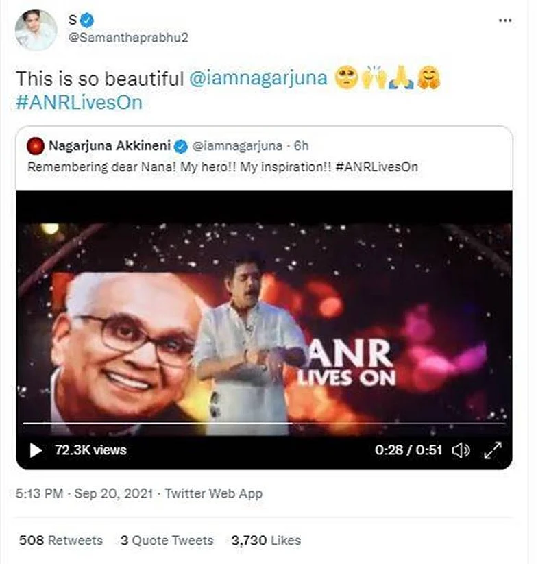 Seeing the post, Samantha Ruth Prabhu took to respond with a sweet post, “This is so beautiful.” She just tagged Nagarjuna in the tweet. Have a look: