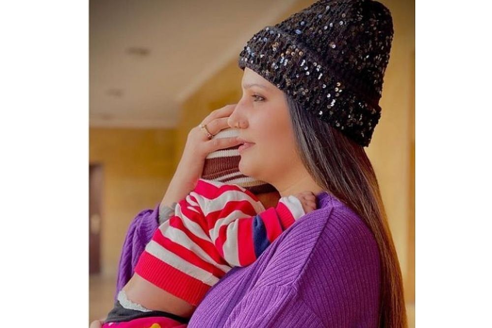 This is the first snapshot of Choudhary with her son. She can be seen, in a purple sweater and black cap, holding her son in her arms with his face hidden. The glow is apparent as the new mother appears to be beaming with joy and pride.