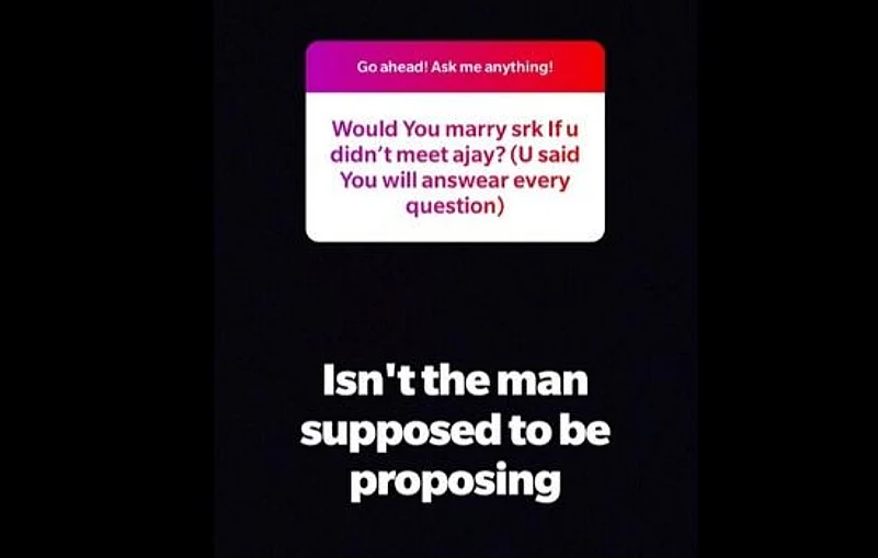 But one answer of Kajol caught our attention. One of her fans asked Kajol that if she would have married Shah Rukh Khan, her good friend and co-star in many films if had she not met Ajay Devgn, her husband and in the brackets he wrote, "You said you will answer anything." To this Kajol replied, “Isn’t the man supposed to be proposing." Kajol and SRK have worked together in many films like Baazigar, Dilwale Dulhania Le Jaayenge, Kuch Kuch Hota Hai, My Name Is Khan and much more. Everyone just loves this jodi onscreen. Kajol would have definitely assumed a question like that to pop up by her fans.