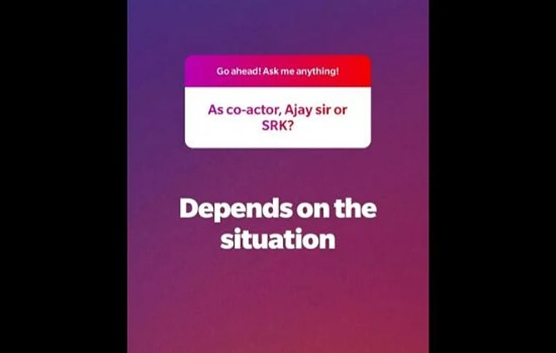 One fan asked her about her next movie with SRK. To this, she said, "Ask SRK." One fan asked Kajol to choose her co-star between Ajay Devgn and Shah Rukh. To this, the Dilwale actress said, "Depends on the situation." On the work front, Kajol will play the role of Savitribai Malusare in Tanhaji: The Unsung warrior. Directed by Om Raut, the movie also stars Saif Ali Khan, Sharad Kelkar, Luke Kenny, Padmavati Rao and Jagapathi Babu. The film releases on January 10, 2020.
