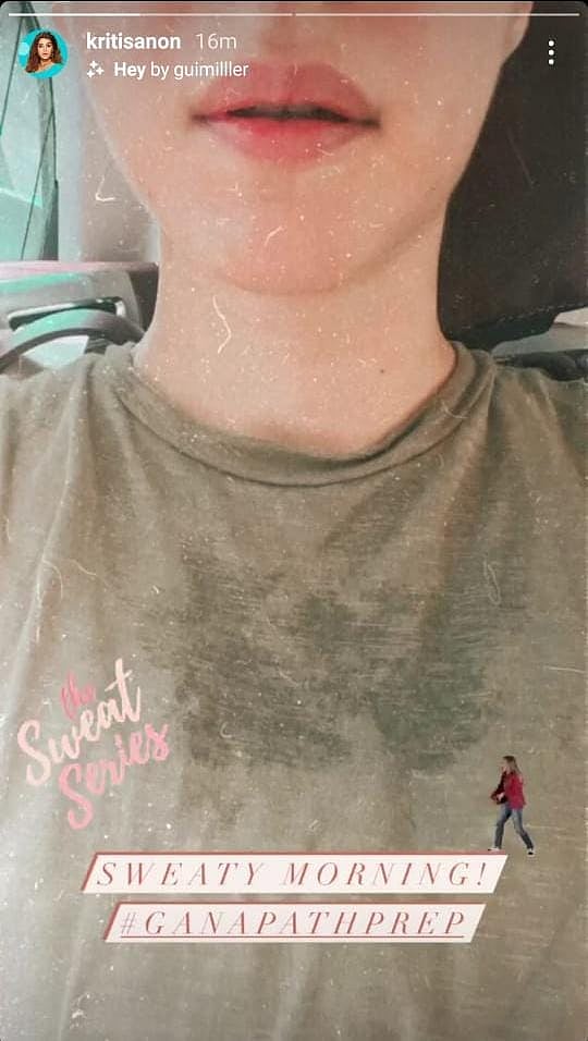 Sharing the pics and videos on her Instagram stories, Sanon shared, "Sweaty Morning! #GanapathPrep (sic)." Have a look: