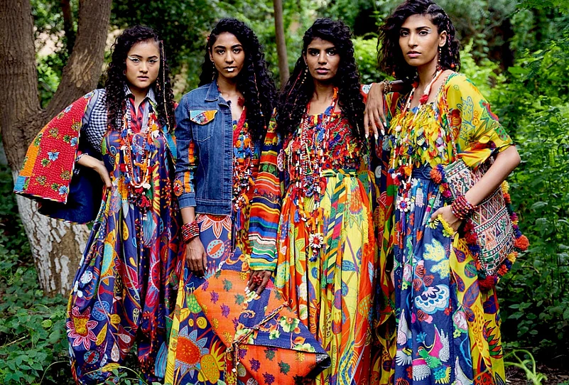 Payal’s process of designing was repurposing recycling and reinventing old garments, fabric waste, embroidery, mirror work patches, laces, trims, tassels, shells and beads. She dug deep into the past as she reinvented traditional embroideries like Sujani, Sheesho, Bharat, Rabari, Kawandi quilting and Mashru. Payal’s silhouettes offered fun dresses, wrap skirts, tie-up blouses and harem pants that had a great mix and match possibilities.