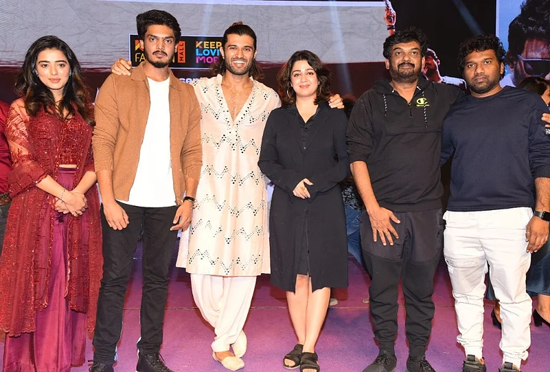 Deverakonda whose Bollywood debut 'Liger' is being directed by Jagannadh, attended a pre-release event of the film in Warangal, Telangana on Saturday evening. The event was attended by only the team of the film.