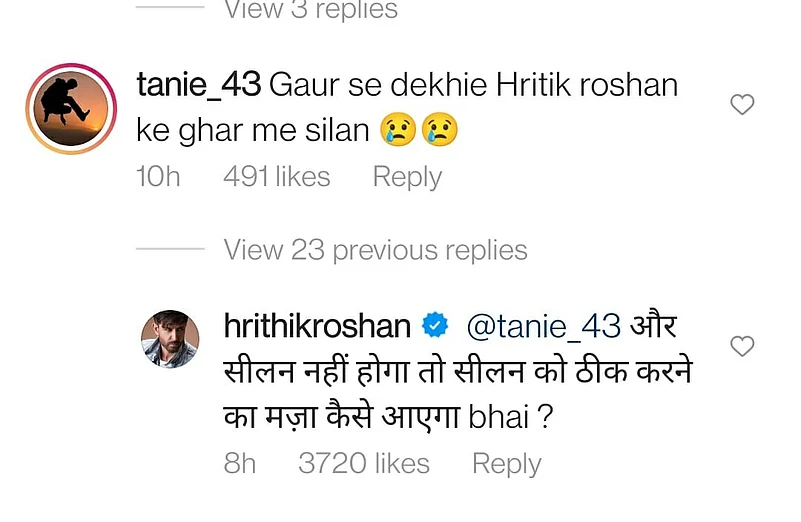The picture soon went viral all over social media and fans started commenting on how the wall in Hrithik Roshan’s house also had the ‘seelan’ aka the seepage stamp. It’s something that is a common thing in pretty much every Mumbaikar’s house. The comments started pouring in huge numbers, and fans just enjoyed how similar their mundane Mumbai homes were nothing too different from Hrithik Roshan’s Juhu penthouse. Here are a few of the fan comments: