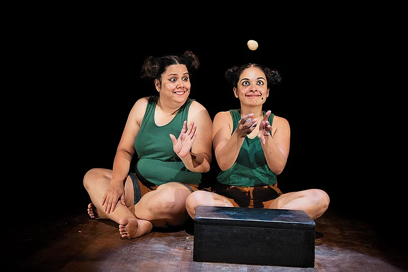 The Adishakti production uses traditional methods from folk theatre to create moments of comic relief. While the two brothers battled over who should rule Kishkindha, two young women, one huge and loud with an overhanging belly, the other small and deft, squabbled over small trinkets and lines of demarcation—the way states today fight over their share of river water and, when the river is in spate, rent the air with cries of despair.