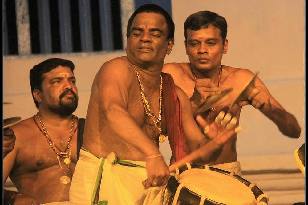 One of his most cherished memories is related with the legendary thayambaka artiste Thrithala Kesavan. “I was an early teenager, dark and scrawny—playing with the left hand. Kesavettan happened to see me perform. So excited was he that the maestro came up on to the stage and took up a chenda from the man to my side and started keeping the beats! Well, honestly, I didn’t at that point in time know who this titan was. Now when I look back it’s amazing!”