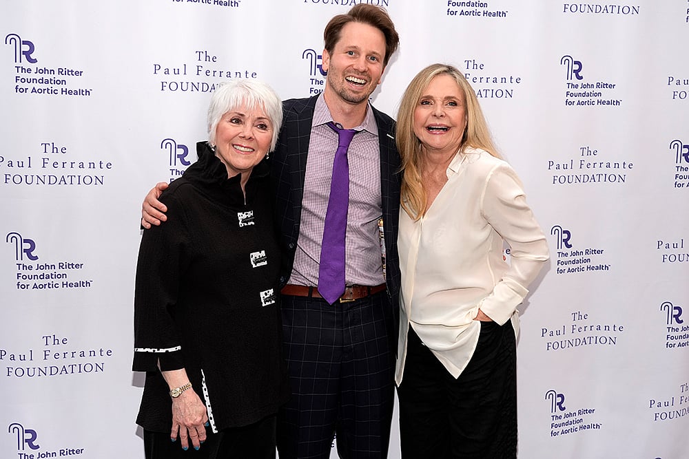 Tyler Ritter, center, son of the late actor John Ritter, poses with actors Joyce DeWitt, left, and Priscilla Barnes at the John Ritter Foundation for Aortic Health’s Evening from the Heart Gala in Los Angeles.