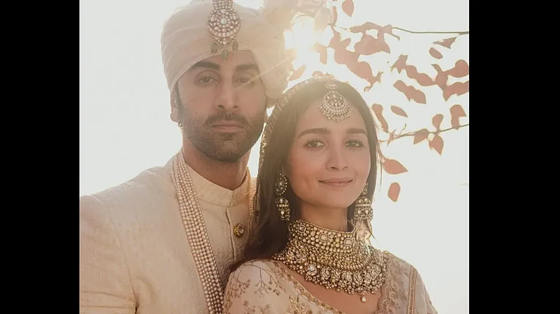 Alia Bhatt shared the photos on her social media and wrote, "Today, surrounded by our family and friends, at home … in our favourite spot - the balcony we’ve spent the last 5 years of our relationship - we got married. With so much already behind us, we can’t wait to build more memories together … memories that are full of love, laughter, comfortable silences, movie nights, silly fights, wine delights and Chinese bites. Thank you for all the love and light during this very momentous time in our lives. It has made this moment all the more special. Love, Ranbir and Alia."