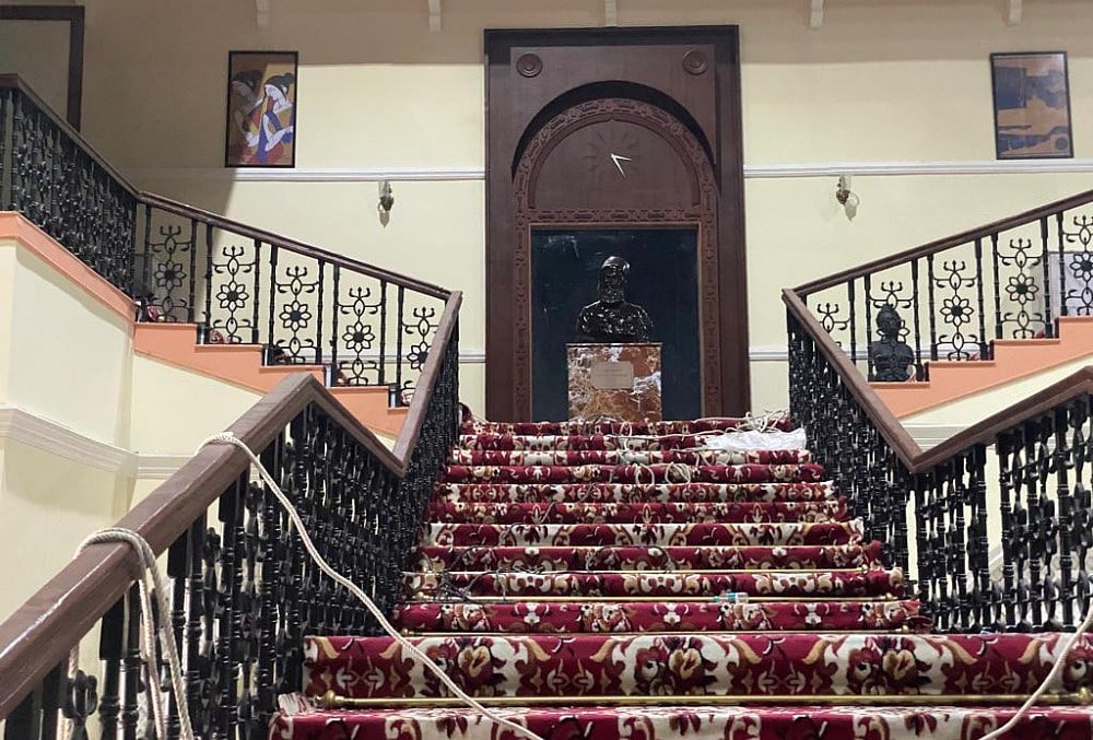 More than 260 to 300 people were on sets in every way possible from different departments of art. The carpentry, the welding work, the upholstery, the side job, electricians. Lots of artists were involved in the detailing. We had to do a lot of work in creating replicas of the railing handles or the statue of Tata because only when you get the visuals right, you enjoy it. Very small elements like pots, planters, and the fire escape pattern were also replicated. We had to order the customisation of carpets and lamps, so that we don't miss out on anything and we are not compromising on design. The set was made in the size of 200x150 area wise and almost to a height of 60 ft. So, we had to build floors inside the studio to have the sequence of the attack.So, it was a huge set.