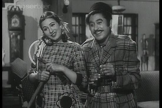 There is a beautiful moment of surrender in the utterly wonderful Chalti Ka Naam Gaadi, during the song “Ek Ladki Bheegi Bhaagi Si”. Madhubala's character has brought her malfunctioning car into a garage in the middle of a rainy night. She has awakened the sleeping mechanic – Kishore Kumar – and the two have quarreled. But Kishore is a gentle soul, and as he eyes Madhubala, soaking wet and boiling mad, he hatches a plan to cheer her. He begins to sing as he works on her car, prancing playfully around the garage, malleting out melodies on engine parts. Madhubala sniffs and harrumphs, almost willing herself to stay angry, but by the end of that song Kishore's antics have worked their charm. The magical moment comes when Madhubala, watching through the windows of her car as Kishore skips up and down the stairs, smiles in spite of herself.