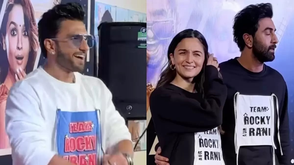 The premiere of Karan Johar's film ‘Rocky Aur Rani Kii Prem Kahaani’, starring Ranveer Singh and Alia Bhatt, was held on Tuesday night ahead of its release on July 28. While Ranveer Singh arrived solo at the event, Alia arrived with Ranbir Kapoor in matching 'Team Rocky Aur Rani hoodies'.