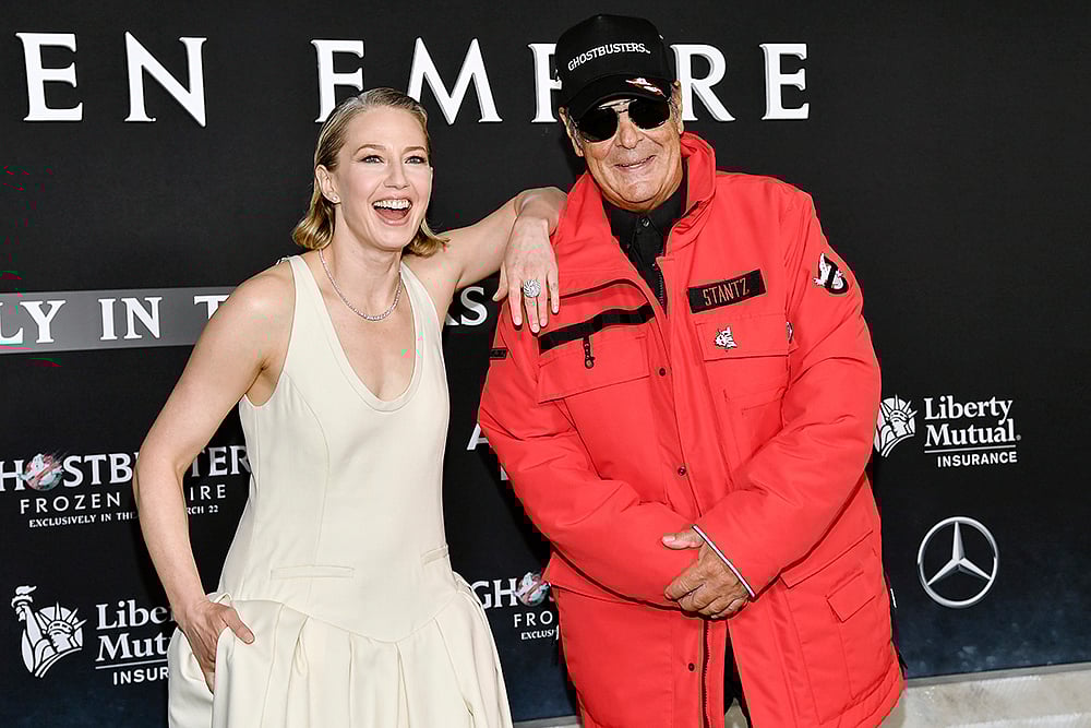 Carrie Coon, left, and Dan Aykroyd attend the premiere of ‘Ghostbusters: Frozen Empire’ at the AMC Loews Lincoln Square in New York.