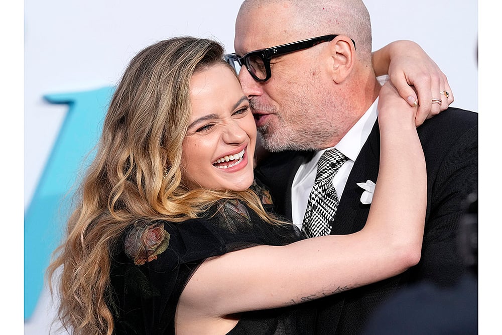 Joey King, left, a cast member in ‘A Family Affair,’ gets a kiss from director Richard LaGravenese at the premiere of the film at the Egyptian Theatre in Los Angeles.