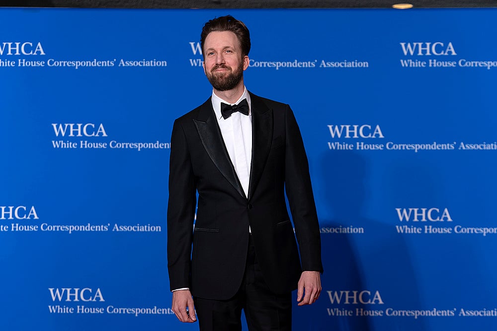 Comedian Jordan Klepper poses for photographers as he arrives at the annual White House Correspondents’ Association Dinner in Washington.