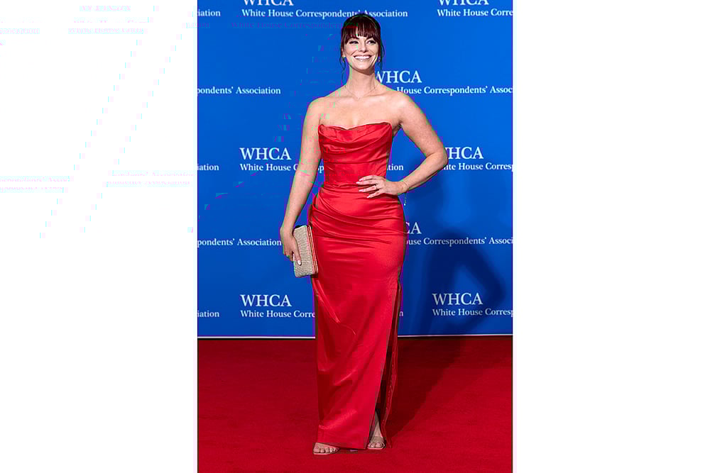 CNN reporter Melanie Zanona poses for photographers as she arrives at the annual White House Correspondents’ Association Dinner in Washington.