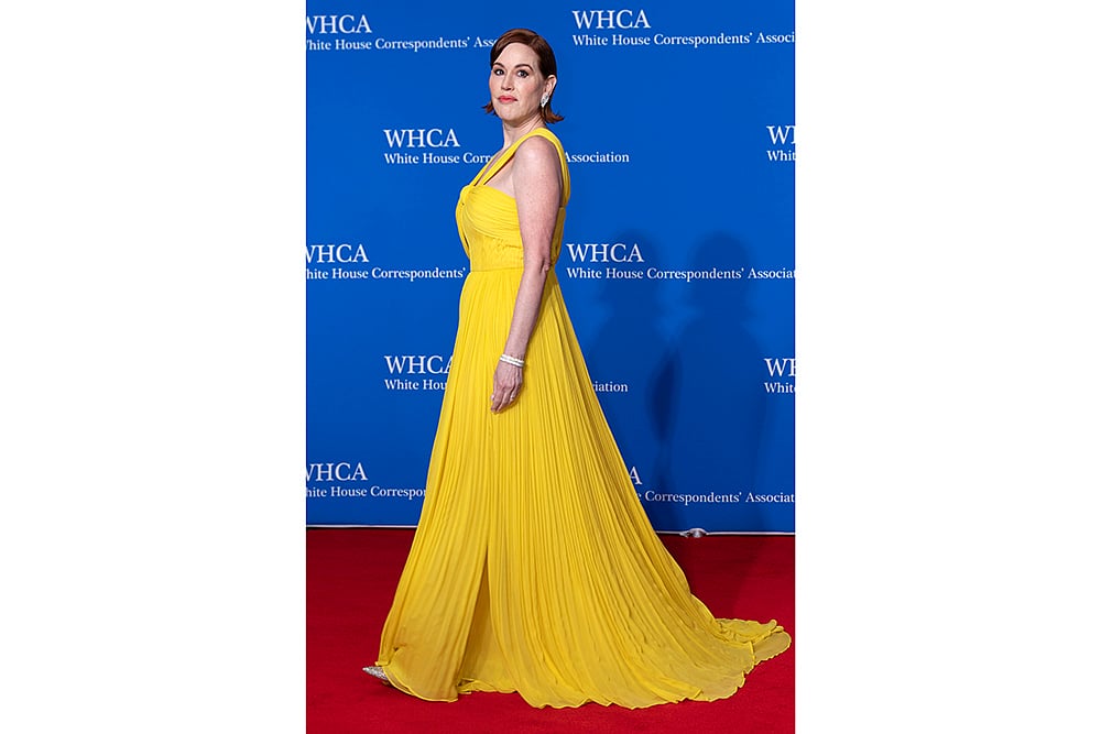 Actress Molly Ringwald poses for photographers as she arrives at the annual White House Correspondents’ Association Dinner in Washington.