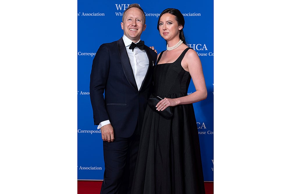 Andrew Harnik and his wife Elizabeth Harnik pose for photographers as they arrives at the annual White House Correspondents’ Association Dinner in Washington.