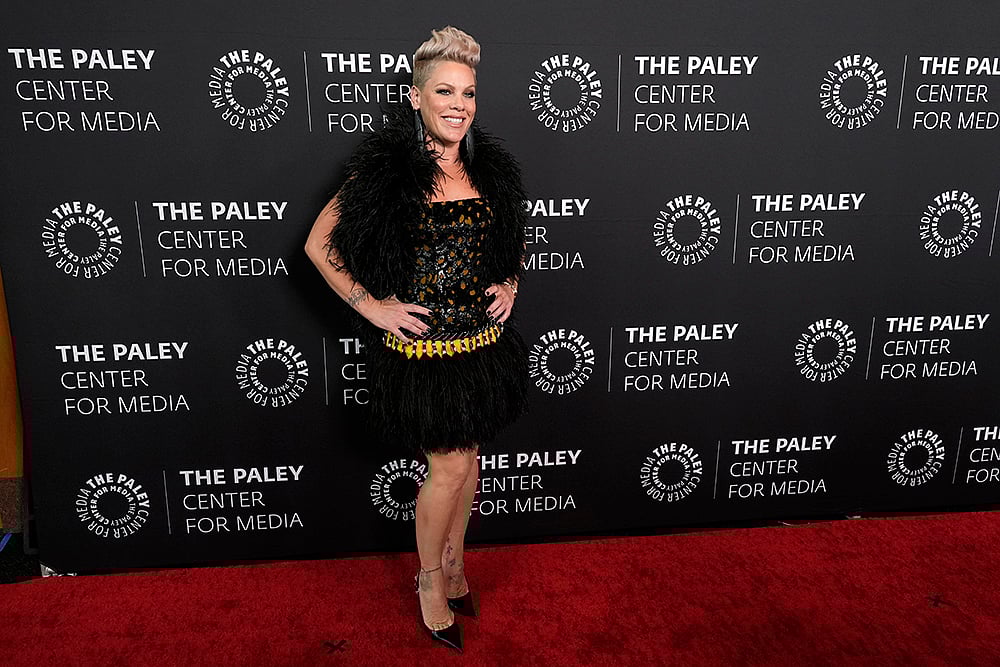 Pink poses at the premiere of the documentary film ‘Bob Mackie: Naked Illusion,’ at the Directors Guild of America in Los Angeles.